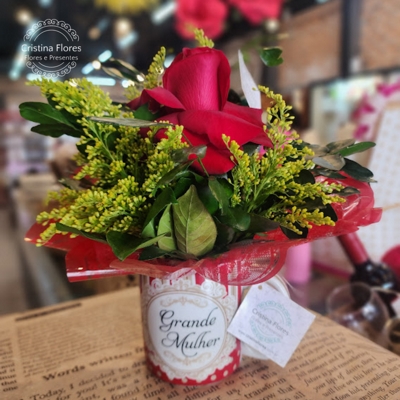 Um presente que expressa admiração com intensidade. A caneca “Grande Mulher” carrega uma mensagem de força e reconhecimento, e dentro dela, cuidadosamente acomodada, uma rosa vermelha transforma o gesto em algo ainda mais marcante.