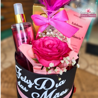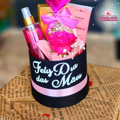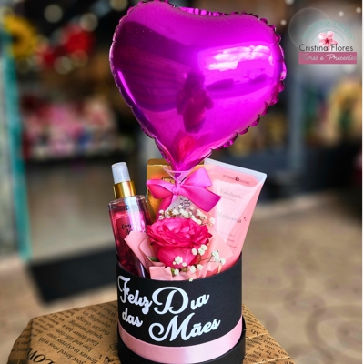 O Box Especial Dia das Mães traz uma composição elegante na caixa preta, criando um contraste perfeito com a delicadeza da rosa natural em tom rosa. O balão de coração adiciona um toque afetivo e comemorativo, tornando o momento ainda mais especial.