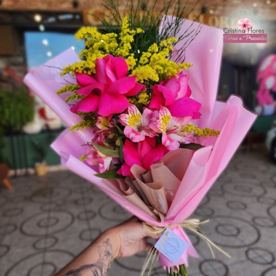 Finalizado no celofane rosa com laço delicado, deixando o buquê ainda mais feminino e marcante.