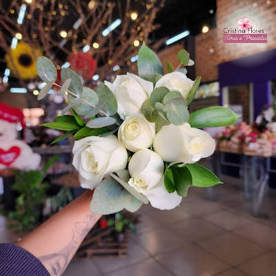 Buque de Noiva Branco 7 Rosas