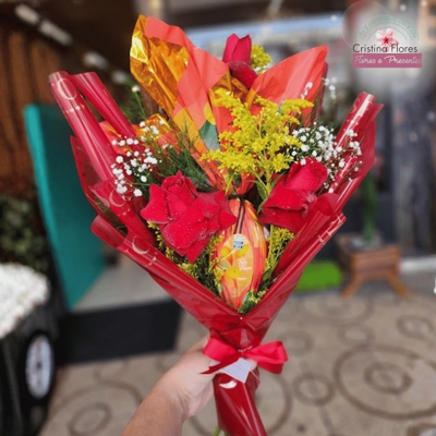 Nosso Buquê com 3 Rosas Vermelhas + Ovo de Páscoa é a combinação perfeita entre o clássico e o doce: rosas vermelhas que simbolizam paixão e carinho, junto a um delicioso chocolate que torna o momento ainda mais especial 🍫🌹