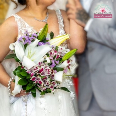 Com lírios brancos como protagonistas, este buquê de noiva transmite sofisticação e serenidade em cada detalhe. Símbolos de pureza e renovação, eles se destacam com imponência, criando uma composição nobre e atemporal.