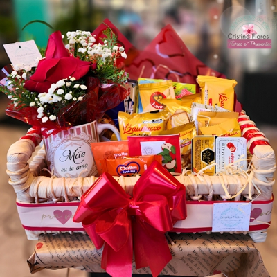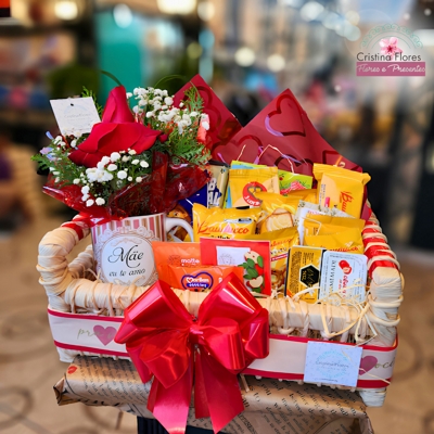A Cesta Café Grande Mulher traz uma combinação encantadora de itens para um café especial, unindo o aconchego das bebidas com o charme das flores. O destaque fica por conta da caneca 330 ml com arranjo de 1 rosa nacional, trazendo um toque romântico e sofisticado ao presente.