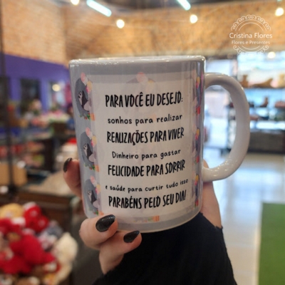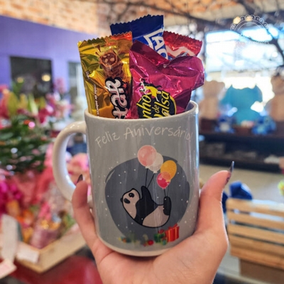 Nossa caneca com estampa de panda vem recheada com 7 bombons variados deliciosos e um toque especial de carinho para celebrar o aniversário de alguém que você ama. Uma forma divertida e meiga de dizer “Feliz Aniversário” e deixar o dia ainda mais alegre!