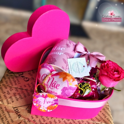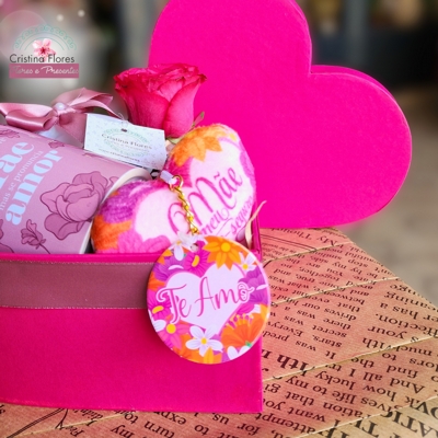 A Cesta Coração de Mãe encanta pela sua apresentação em formato de coração na cor pink, tornando o gesto ainda mais especial e simbólico. A caneca temática “Mãe” traz um toque útil e carinhoso, enquanto o chaveiro complementa com uma lembrança que pode acompanhar no dia a dia.