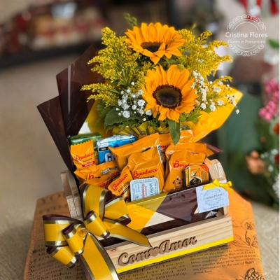 Surpreenda com esta charmosa cestinha, perfeita para presentear com carinho e sabor! Ela inclui uma seleção de itens deliciosos: