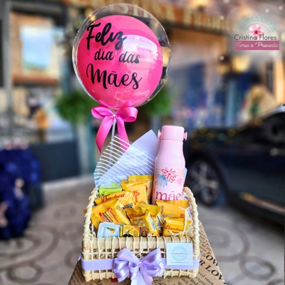 A garrafa temática “Mãe” traz um toque útil e duradouro, enquanto o balão bubble reforça a celebração, tornando o presente ainda mais encantador.