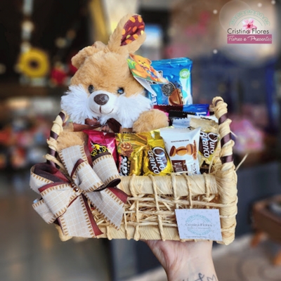 Nossa Cestinha de Chocolates com Coelho combina um coelhinho de pelúcia super fofo com deliciosos chocolates, criando o presente perfeito para encantar quem você ama. Finalizada com celofane e laço, já vai pronta para impressionar ✨