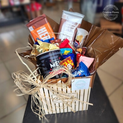 A Doce Cestinha Meu Super Namorado é a escolha perfeita para surpreender quem faz seu coração bater mais forte. Ela vem com uma caneca “Meu Super Namorado”, acompanhada de 2 barras de chocolate, 1 Snickers e 10 bombons variados, criando uma combinação deliciosa e cheia de carinho.