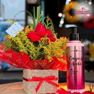 O Meu Único Amor com Hidratante Cereja e Avelã une a intensidade de 1 rosa vermelha nacional com o cuidado e sofisticação do hidratante Intense Secret cereja e avelã 190ml. A rosa representa o amor em sua forma mais pura, enquanto o hidratante prolonga esse carinho com uma fragrância envolvente e inesquecível.