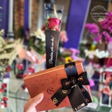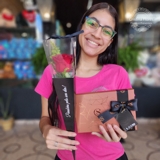 A composição ganha ainda mais encanto ao ser apresentada em uma caixinha elegante, finalizada com laço de cetim, que guarda uma caixa de bombons sortidos Cacau Show 95g — um toque de doçura que completa a experiência com sabor e afeto.