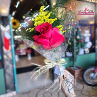 Arranjo criado e entregue pela floricultura local de